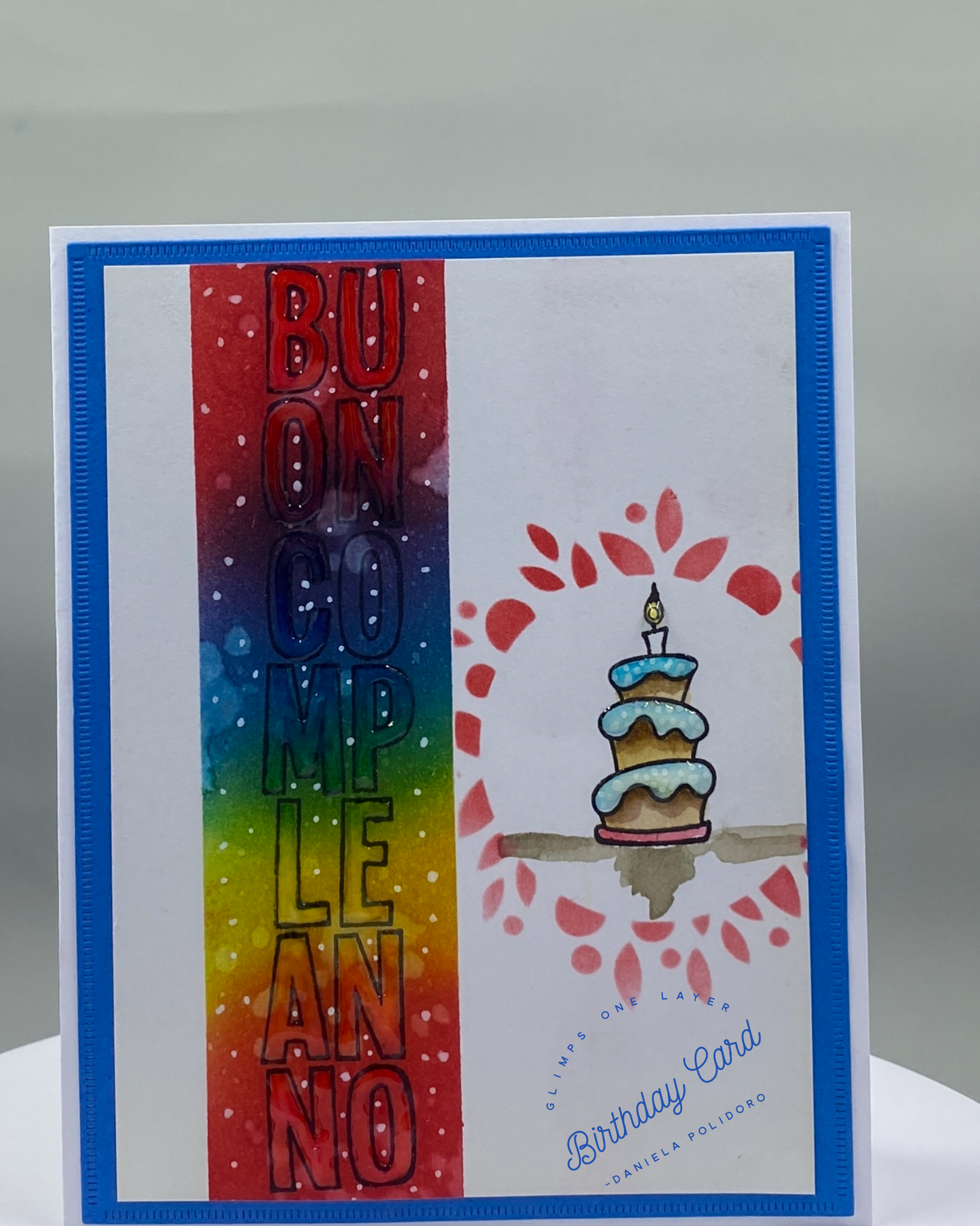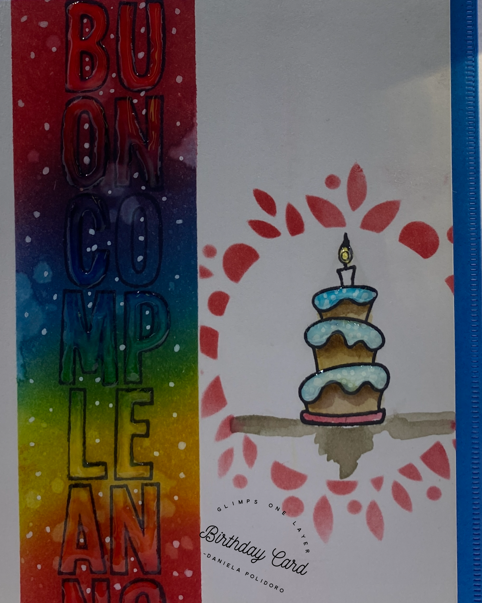 Ho voluto realizzare una card di compleanno con l’apposita plancia di timbri di Glimps. Ecco il risultato.