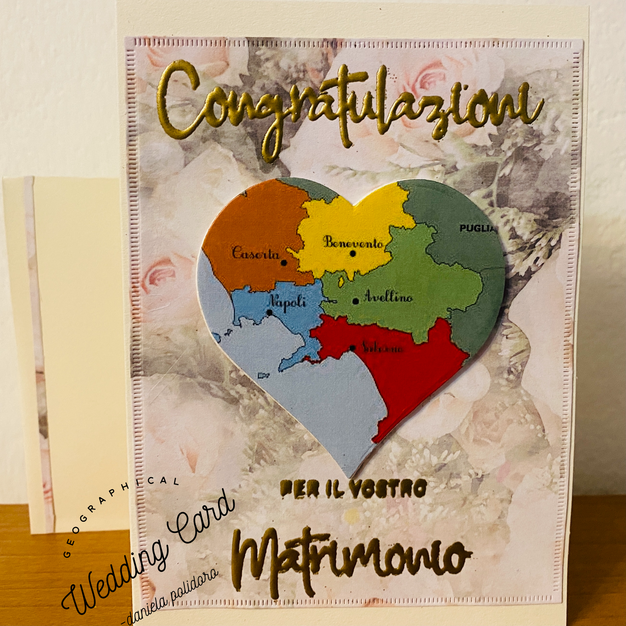 - Un biglietto rosa con busta coordinata / A pink folded card with matching envelope