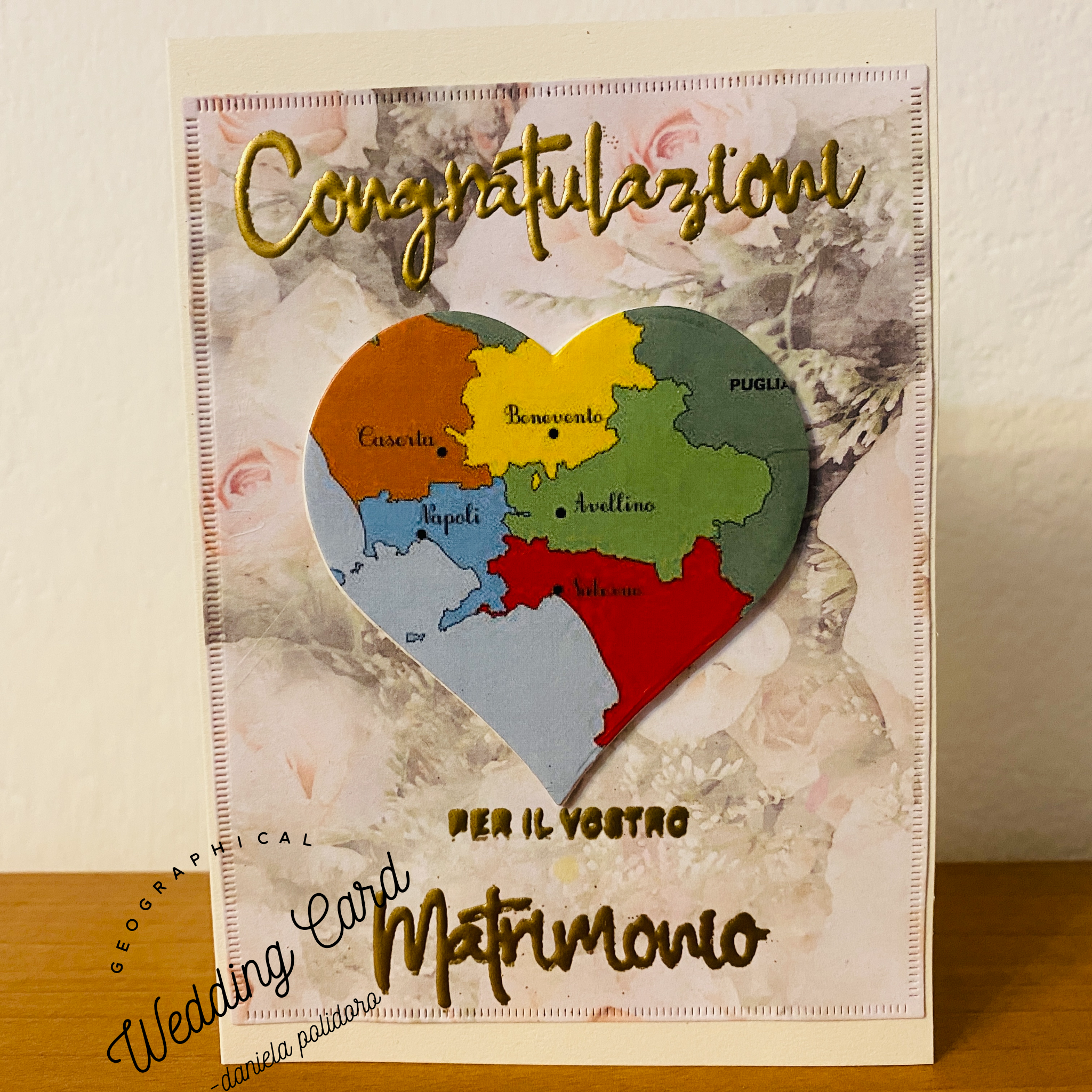- Un biglietto quadrato bianco con busta coordinata / A square white folded card with matching envelope