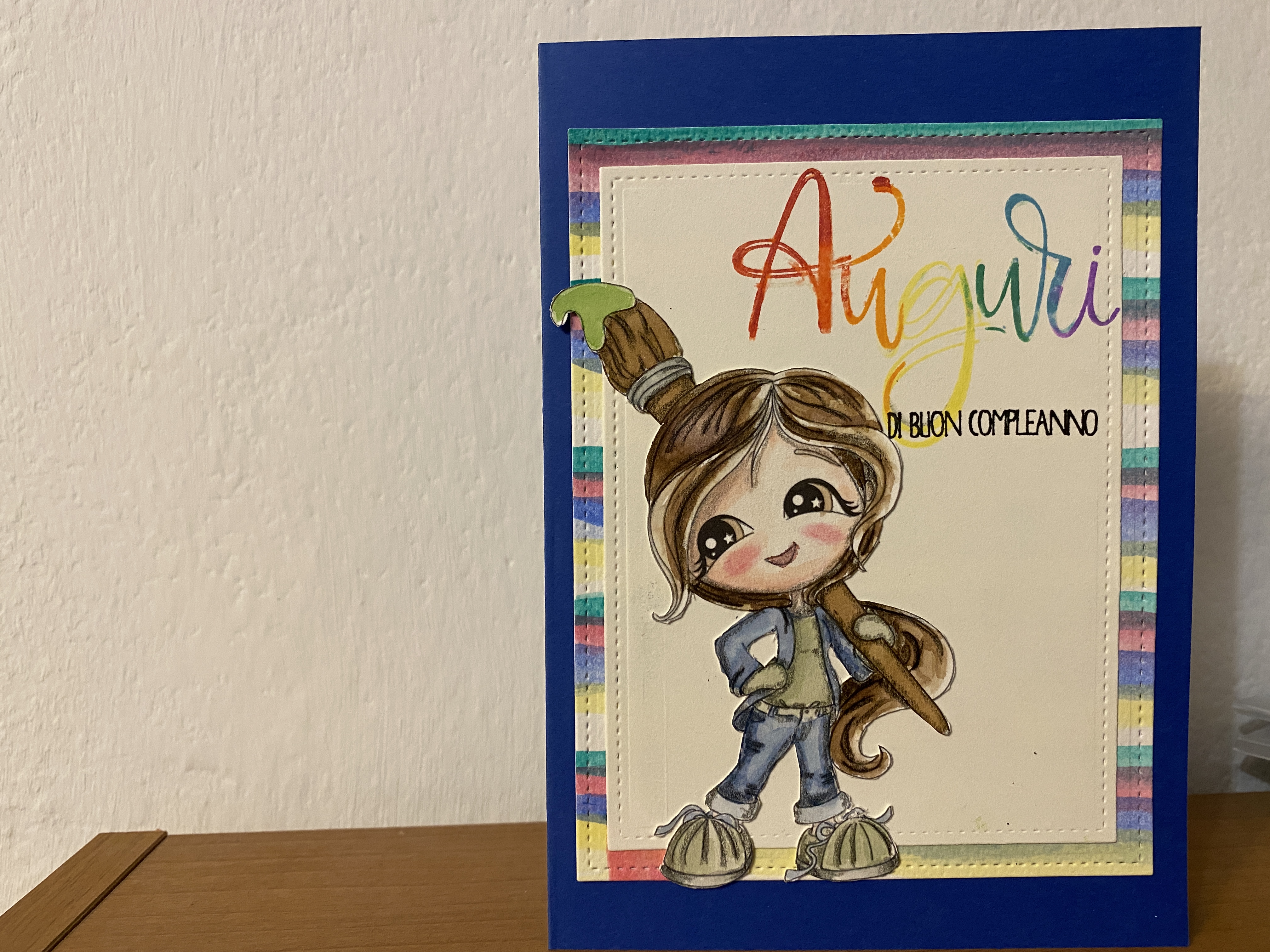 Dato che l’amicizia dà colore alla vita, ho pensato di fare questo biglietto di compleanno per un’amica. Ho usato i Distress Inks come acquarelli come imparato da Jennifer Rustioni.